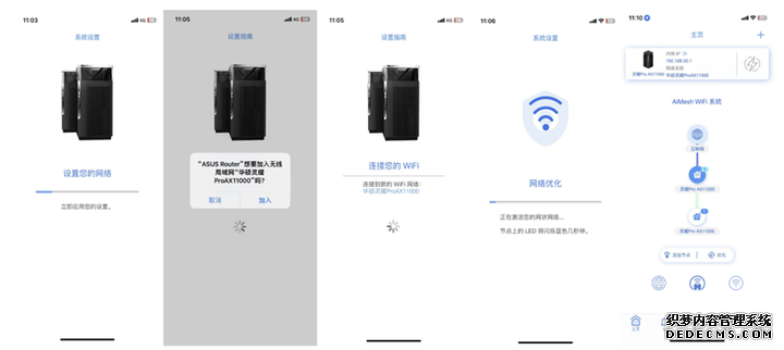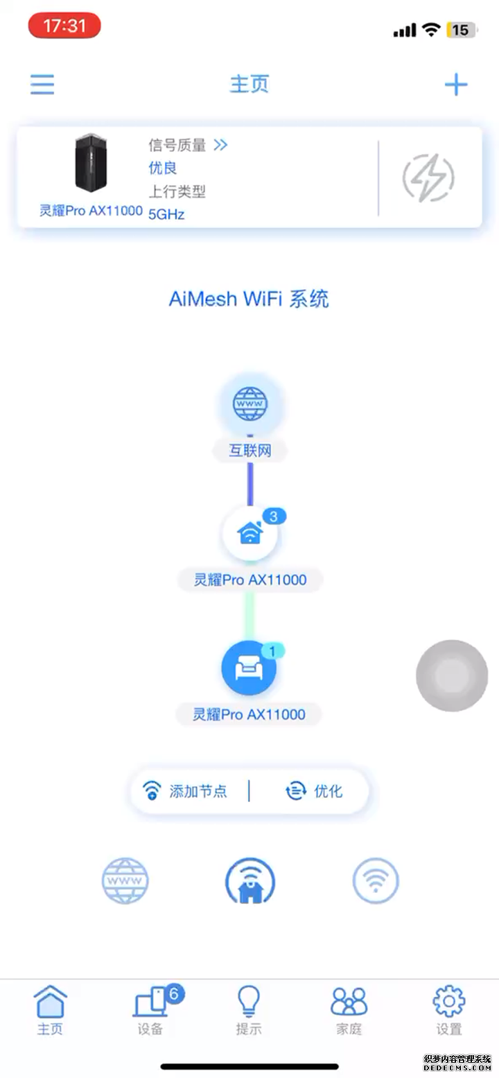 通过网线将路由器的WAN口与光猫相连接,这台路由器则默认成为了AiMesh的主路由器,另一台即成为了AiMesh节点。接下来就可以直接在APP上进行操作了。