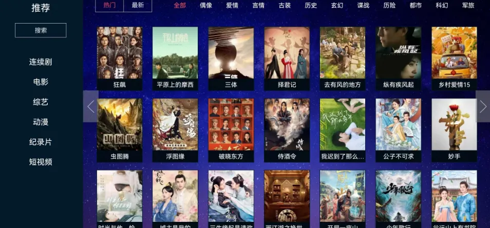 二、瓜子TV 电视APP+安卓手机 一个专业的看片APP,有电视剧、电影、综艺、动漫、纪录片、短视频等,电影电视剧里面包括爱情、言情、古装、历史、谍战、科幻等等电影。