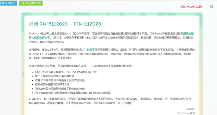 之前有段时间,Z-lib差点就被毙了,经过一段曲折之后他又复活了,而且还开始募捐了, 当然了,这次的募捐决非强制,Z-lib 这个去年差点被搞垮,几经风波的非盈利项目,从不拒绝任何一个想要看书的人。 而且反过来想,能有这么多人支持的项目,足可见它多良心了。 扯远了,咱们还是回到看书姿势上—— 官方直连 不知道大家发现没有,过去几个月,单就国内 Z-lib 获取电子书而言,官方和非官方的境遇可谓天差地别。 不过这次反过来了,非官方项目关站的关站,被墙的被墙,其他像基于读秀+秒传链接建立起来的资源站,也遇到了百度网盘改接口,油猴脚本作者停更等诸多不顺。 而今年 2 月份回归明网的官方,悄然间已经又支棱了起来,像标题说的那样,可以免翻访问了。 去年之前,Z-lib 也没什么免翻不免翻的,Z-lib 为了让全球用户能成功访问,会根据访问官网时的 IP,重定向到可直连的域名。 结果去年先后经历了出版商围堵、域名注册商背刺、美国端家,这才打破了原先那一套的「收藏官网 = 永不失联」的玩法。 Z-lib 回归明网后,就不再有什么官网了,取而代之的是分发给个人的链接,以及登录页。
