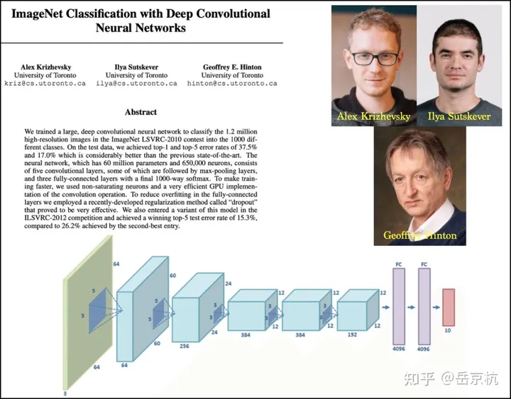这篇论文有三位作者,分别出生于前苏联,西班牙、越南,然后辗转到美国求学、工作和定居,论文发表的时候他们都在30岁左右,已经是业内顶级的科学家,在谷歌拿着丰厚的薪水,谷歌跟美国也因他们的杰出工作而受益巨大。 一作Ilya Sutskever,前苏联(现俄罗斯)犹太人,5岁时全家移民以色列耶路撒冷,在此生活学习到16岁(Ilya当时在以色列开放大学读大二),举家又移民加拿大多伦多,Ilya转学多伦多大学,在这里认识了深度学习领域的教父Geoffrey Hinton教授,并成了他的博士生。 2012年,Ilya跟导师Hinton,以及博士生同学Alex Krizhevsky,设计了一个跑在两块GPU上的深度神经网络AlexNet,这个网络在ImageNet大赛上以远超第二名的成绩一举得冠,震惊业内的同时并引爆了整个深度学习领域。 师徒三把相关成果整理成论文《Imagenet classification with deep convolutional neural networks》发表,这篇论文目前有超过14.6万次引用,是业内最知名的论文之一。